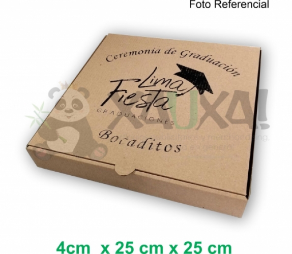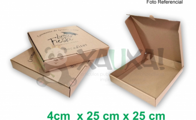 Caja Para Pizza de cartón microcorrugado tamaño: 4 x 25 x 25 cm, impresión 1 color.