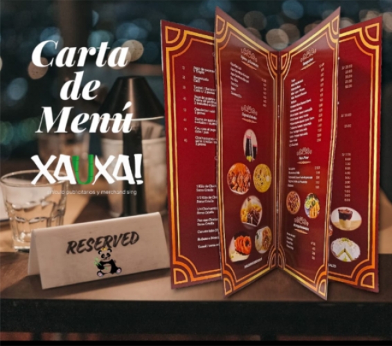 Carta de Menú en couché impresión full color / couché 300 gr carátulas plastificado mate / couchè 150 gr hojas interiores / 22 soles unidad a partir de Docena *No incluye diseño*